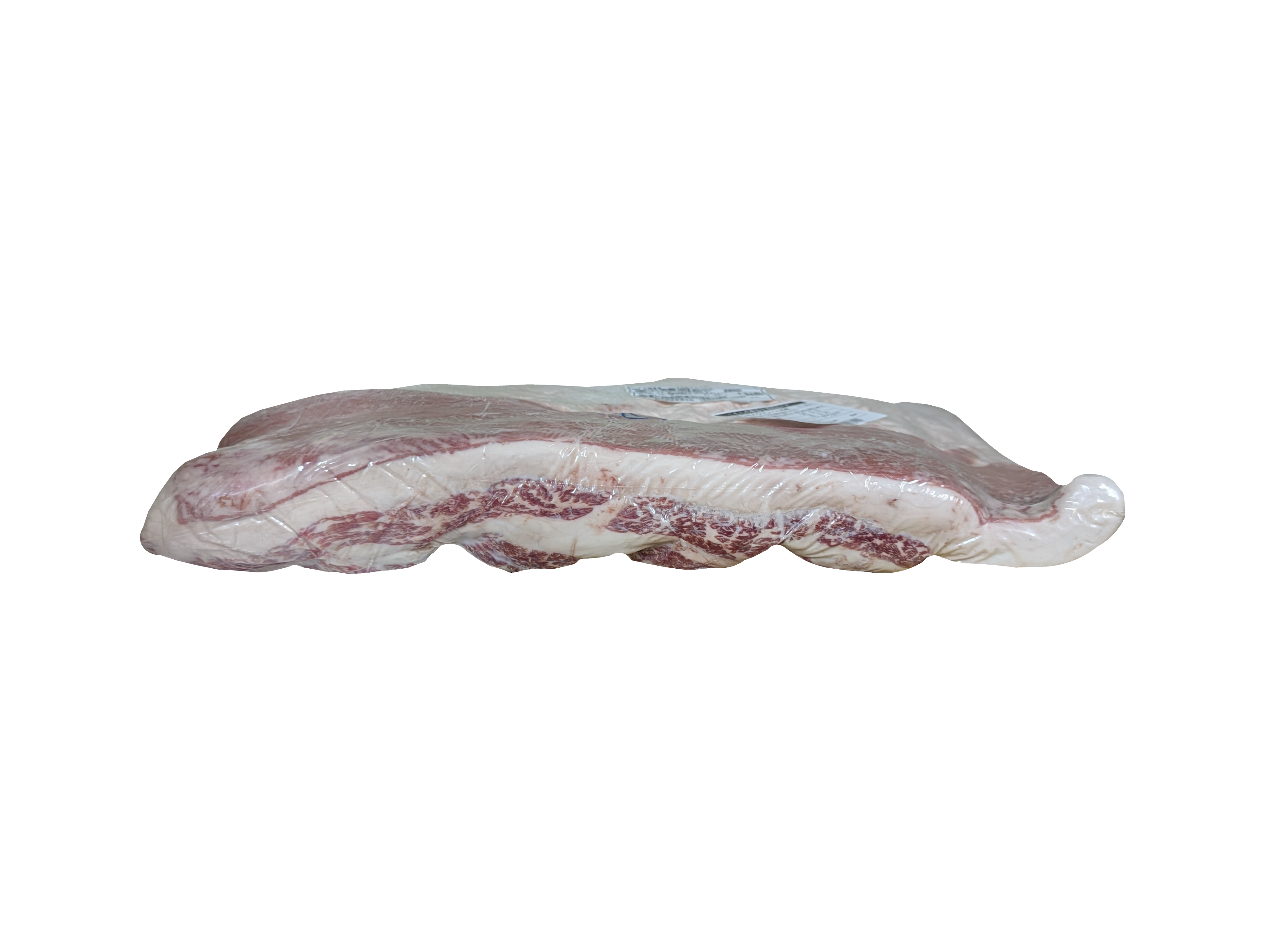帯広牛(交雑牛)のトモバラプレートです。ナカバラのうち、あばら骨に隣接している部位になります。並カルビ材として使用します。
