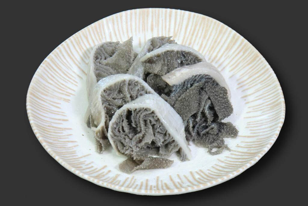 牛の第三胃袋。コリコリとした歯ごたえのある食感で臭みが少ない部位。低脂肪、低エネルギーの部位として知られています。