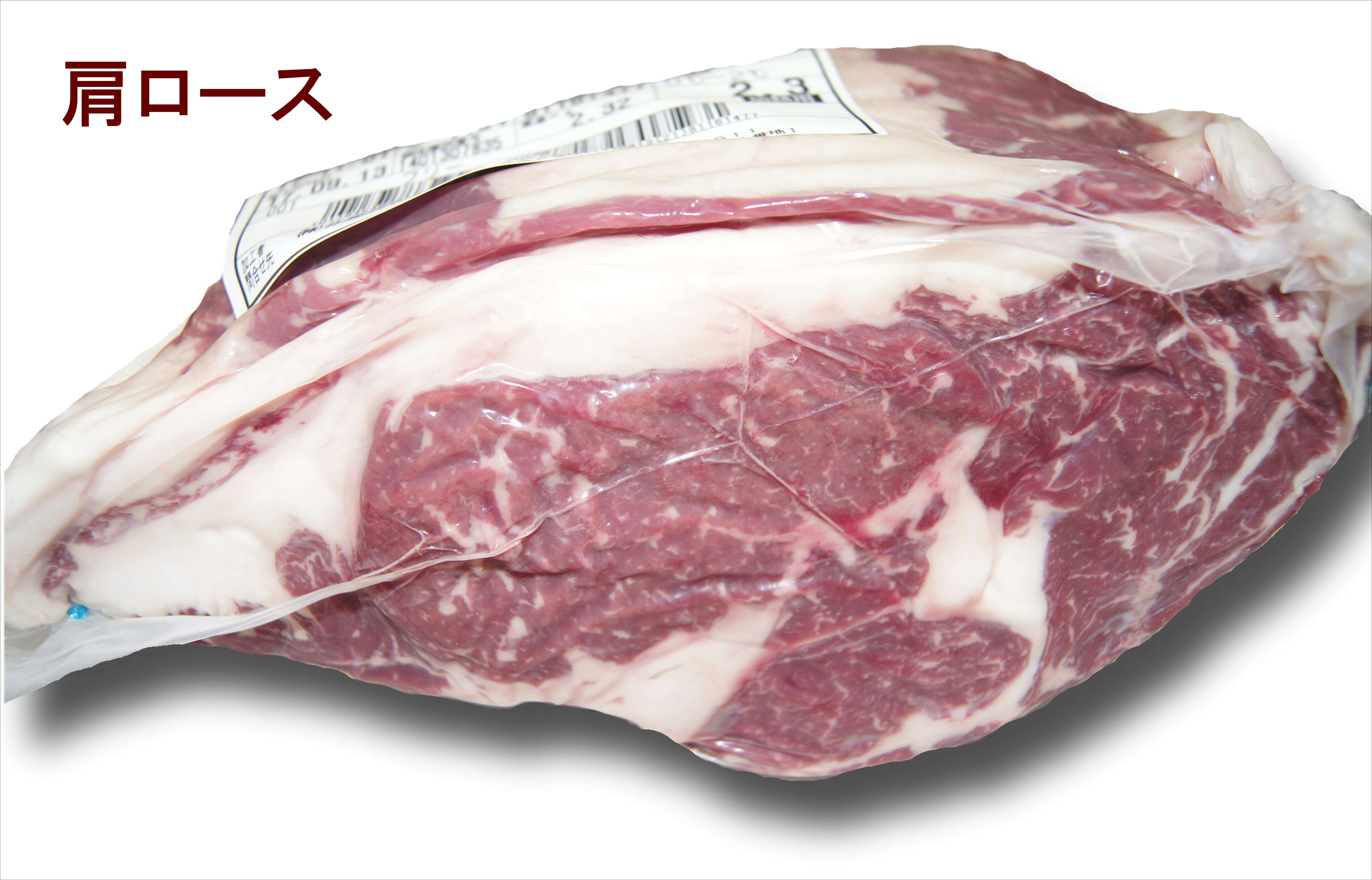 リブ側、ロース芯、ザブトンの3分割です。ほぼグリムキ状態で歩留まりが高くステーキ、焼肉に最適です。